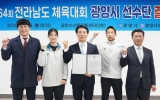 광양 손태성 기자2025. 04.17[나이스데이]광양시와 광양시체육회는 지난 16일 광양수산물유통센터에서 ‘제64회 전라남도체육대회’ 출전 선수단 결단식을 개최했다고 17일 밝혔다. ‘제64회 전라남도체육대회’는 오는 4월 18일부터 21일까지 나흘간 장성군 일원에서 열린다. 이번 대회는 23개 종목에 총 8,000여 명이 참가하며, 광양시 선수단은 전 종목에 400여 명이 출전해 종합우승을 목표로 열전을 펼칠 예정이다. 정인화 광양시장은 “대회에 참가하기 위해 비 오듯 땀을 흘리며 훈련에 매진한 우리 선수들에게 격려의 박수를 보낸다”며, “최선을 다한 만큼,…