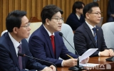 탑뉴스 뉴시스2025. 04.17[나이스데이] 권성동 국민의힘 원내대표는 전날 헌법재판소가 한덕수 대통령 권한대행의 헌법재판관 후보자 지명의 효력을 정지한 것을 두고 "퇴임을 목전에 둔 문형배, 이미선의 마지막 실력 행사로 밖에 볼 수 없다"고 17일 말했다. 권 원내대표는 이날 오전 국회에서 열린 비상대책위원회의에서 "헌재가 정치재판소가 됐고 나아가 민주당의 꼭두각시로 전락했다는 의구심을 지울 수 없다"며 이같이 밝혔다. 권 원내대표는 "한 대행의 후임 재판관 지명은 단순한 인사권 행사를 넘어 국정안정을 위한 최소한의 안전장치를 마련해야 한다는 고뇌 …