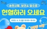 나주 이영욱 기자2025. 04.10[나이스데이]순천시는 생명나눔 실천을 장려하기 위해 오는 11일 오전 10시부터 오후 4시까지 순천시청과 보건소 앞에서 단체헌혈 행사를 실시한다. 이번 헌혈 행사는 혈액 특성상 장기간 보관이 불가능하므로 적정 혈액 보유량 유지를 통한 혈액수급 안정화에 기여하고 지역사회 헌혈문화 조성을 위해 마련했다. 헌혈을 하기 위해서는 반드시 신분증을 지참하여야 하며 헌혈 가능 연령은 16세에서 69세까지로, 헌혈 전 검사 및 문진을 통해 적격자만 헌혈에 참여할 수 있다. 헌혈 참가자는 대한적십자사에서 제공되는 헌혈증 및 기념품을 지급받는…
