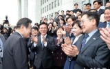탑뉴스 뉴시스2025. 04.10[나이스데이] 한동훈 전 국민의힘 대표는 10일 제21대 대통령선거 출마를 선언하고 공식적인 대선 주자로서 행보를 시작했다. 한 전 대표는 이날 오후 국회 본관 분수대 앞에서 차기 대선 출마를 공식 선언했다. 이 자리에는 조경태·고동진·안상훈·김예지·김소희·배현진·정성국·박정훈·김상욱·한지아·박정하·서범수·송석준·우재준 의원 등이 함께 했다. 한 전 대표는 이 자리에서 "국정의 한 축인 여당을 이끌었던 사람으로서 국민께 진심으로 사과드린다"며 "오직 서로를 물어뜯고 상대를 쓰러뜨리려는 정치가 온 국민을 갈등과 분열로 몰…