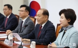 정치 뉴시스2025. 04.09[나이스데이] 더불어민주당은 9일 한덕수 대통령 권한대행 국무총리의 이완규 법제처장 등 헌법재판관 후임자 지명을 두고 "이완용에 이은 역사상 최악의 벼슬아치", "대통령 고유 권한을 도둑질한 자"라며 강도 높게 비판했다. 이재명 대표는 이날 최고위원회의에서 "권한 없는 자의 행위, 이게 무효의 대표적 사례"라며 "(한 대행이) 왜 이런 무리한 행위를 하는지 모르겠는데 욕심이 앞서고 의욕이 앞서다 보면 이런 어처구니 없는 실수를 하게 되는 것 같다"라고 밝혔다. 이 대표는 "한덕수 권한대행은 그런 사적 이익을 위한 꼼수…