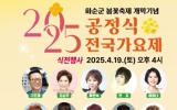 교육 이자형 기자2025. 04.07[나이스데이]화순군은 '2025 화순 공정식 전국 가요제가 오는 4월 19일 토요일 16시부터 화순 하니움 공설운동장 특설무대에서 화려하게 개최된다. ‘공정식 전국 가요제’는 가수 김용임의 ‘부초같은 인생’, ‘적벽 가는 길’ 등을 작곡한 화순 동면 출신 공정식 작곡가의 대중가요 발전에 기여한 공로를 기념하여 진행되는 전국 단위의 가요제이다. 4회째를 맞은 올해는 '2025 화순 봄꽃 축제 개막기념으로 진행될 예정이다. 공정식 전국 가요제는 2025년 4월 12일 하니움문화스포츠센터 만연홀에서 진행하는 예선을 거쳐, 4월 1…