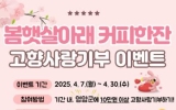 광주 이자형 기자2025. 04.07[나이스데이]영암군이 이달 7~30일 봄 맞이 고향사랑기부제 특별이벤트 ‘봄 햇살 아래 커피 한 잔’을 진행한다. 영암군에 10만원 이상 고향사랑기부한 기부자에게 5,000원 상당의 커피 쿠폰을 추가 증정하는 내용. 이번 이벤트는 고향사랑기부에 대한 감사의 마음을 담아 커피 한 잔의 여유를 즐기도록 마련됐다. 고향사랑기부는 온라인 ‘고향사랑e음’, ‘위기브’ 또는 전국 농·축협에서 할 수 있다. 이영주 영암군 홍보전략실장은 “고향사랑기부로 지역에 좋은 일도 하고, 커피 한 잔도 즐기며 상춘의 즐거움도 함께 누려보길 바란…