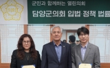 나주 이영욱 기자2025. 03.28[나이스데이]담양군의회가 27일 입법 ․ 정책 법률고문 위촉식을 갖고 박순종 ․ 우지영 교수를 신임 고문으로 위촉했다고 밝혔다. 박순종(한양대학교 공공정책대학원 겸임교수) 신임 고문은 동 대학교 지방자치연구소 지방의정센터장, 부여군의회 입법고문을 맡고 있으며, 우지영(경희대 공공대학원 객원교수) 신임 고문은 한국지방정치연구소 총괄 소장, 남원시의회 입법정책 고문으로 활동하고 있어 예산결산 분석, 자치법규 제․개정, 관련법규 해석 등 임기 2년간 입법 ․ 정책 분야에서 보다 전문적인 자문이 가능할 것으로 기대를 모으고 있다. …
