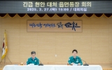 전남 이영욱 기자2025. 03.27[나이스데이]순천시는 27일 시청 대회의실에서 산불과 구제역 등 재난 현안에 대한 선제 대응을 위해 ‘긴급 현안 대처 읍면동장 회의’를 열었다고 밝혔다. 이번 회의는 노관규 시장 주재로 열렸으며, 정광현 부시장과 행정지원국장, 안전총괄과장, 산림자원과장, 동물자원과장, 24개 읍면동장이 참석했다. 긴급회의에서는 ▲산불 예방 ▲구제역 방역 ▲복지취약계층 점검 ▲공사현장 등 시민 안전관리 등에 대해 주요 현안 사항을 점검했다. 노관규 시장은 “산불은 지나치다 할 정도로 예방에 힘써야 하며, 구제역 예방을 위해서는 철저한 방…