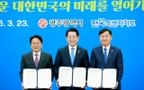 구청 나이스데이2025. 03.23[나이스데이]전라남도·광주광역시·전북특별자치도는 23일 나주시청 대회의실에서 2036 전주 하계올림픽 성공 유치를 기원하고, 호남권 메가시티 경제동맹 강화를 위한 업무협약을 했다. 협약식에는 김영록 전라남도지사와 강기정 광주광역시장, 김관영 전북특별자치도지사가 함께했다. 지난 2024년 7년 만에 부활한 호남권정책협의회가 경제, 문화 등 분야에서 시·도 간 협력을 선언한 상징적인 의미가 있었다면, 이날 업무협약은 국제행사 유치·개최, 첨단산업과 건설 SOC 등에 대해 보다 세부적인 협력방안을 마련하고 호남권 경제동맹을 속도감 있…