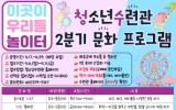 화순 여흥기 기자2025. 03.20[나이스데이]화순군은 20일 군립청소년수련관에서 '2025년 2분기 문화 프로그램 참가자 172명을 선착순 모집한다고 밝혔다. 이번 2분기 프로그램은 청소년들이 창의력과 자기 표현력을 키울 수 있도록 스포츠·요리·악기 등 다양한 분야의 강좌를 운영하며, 수련관 이용 청소년의 관심사와 요구를 반영했다. 수업은 ▲슬기로운 ‘스포츠’ ▲‘다트’ 챔피언 ▲맛있는 그림책 ‘리딩푸드’ ▲‘발레’ 꽃이 피었습니다 ▲‘체스’ 다이브 ▲‘도시락’ 만들어 봄 ▲스텝 바이 스텝 ‘클라이밍’ ▲상상 놀이터 ‘창의 미술’ ▲‘통기타’ 스타트 ▲‘마술’…