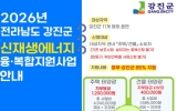 강진 이영욱 기자2025. 03.18[나이스데이]강진군이 산업통상자원부와 한국에너지공단이 주관하는 ‘2026년 신재생에너지 융복합지원사업’ 공모 신청을 위한 수요조사를 오는 20일부터 4월 10일까지 실시한다. 신재생에너지 융복합지원사업은 에너지 자립도시 조성과 탄소중립 기반 구축을 위해 주택, 건물(상업·공공)에 2종 이상의 신재생에너지원(태양광, 태양열, 지열) 설비를 설치·지원하는 것으로 공모사업에 선정될 경우 2026년에 본격적인 설치가 진행된다. 신청 대상은 강진군 지역 주택, 건물 소유자로 가구별 1개의 에너지원만 신청이 가능하다. 본인서명사실확인서…