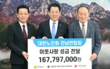나주 이영욱 기자2025. 03.14[나이스데이]전라남도는 14일 대한노인회 전남연합회가 사회복지공동모금회에 이웃사랑 성금 1억 6천800만 원을 기탁했다고 밝혔다. 도청에서 열린 기탁식에는 김영록 전남도지사, 정양수 대한노인회 전남연합회장, 김동극 전남사회복지공동모금회 사무처장 등이 참석했다. 기탁받은 성금은 대한노인회 전남연합회 시군 지회와 주요 경로당 등 1천600개소에 ‘이웃사랑, 나누면 행복!’ 모금함을 설치하고 어르신이 자율적으로 참여해 모금한 것으로, 22개 시군 저소득층 어르신에게 지원될 예정이다. 김영록 지사는 “어려운 경제 상황에서도 저소득층 …
