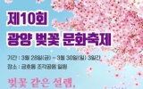 [나이스데이]광양시는 "벚꽃 같은 설렘, 소풍 같은 봄날"이란 주제로 제10회 광양벚꽃문화축제가 오는 3월 28일부터 30일까지 3일간 금호동 조각공원 일원에서 열린다고 밝혔다. 올해로 10회를 맞이하는 이번 축제는 개막식을 비롯해 ▲ 광양시립합창단 공연 ▲ 벚꽃가요제 ▲ 청소년댄스페스티벌 ▲ 금호동 주민자치센터 공연 ▲ 초대가수 무대 ▲ 백운대길 버스킹 공연 등 다채로운 프로그램이 마련돼 있다. 또한 주 무대가 설치된 조각공원에는 기획행사와 다양한 체험·판매·전시 부스가 운영된다. 기획행사로는▲ 금호동 역사 사진전…
