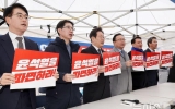 탑뉴스 뉴시스2025. 03.12[나이스데이] 박찬대 더불어민주당 원내대표는 12일 헌법재판소를 향해 "정의를 미루는 것은 불의에 동조하는 것"이라며 신속한 윤석열 대통령 탄핵심판 선고를 촉구했다. 박 원내대표는 이날 국회 본청 앞에서 열린 도보행진 출정식에서 "헌법재판소는 신속히 결정을 내려야 한다"며 이처럼 말했다. 그는 "오늘부터 우리는 국회에서 광화문까지 내란수괴 윤석열의 신속한 파면을 촉구하는 정의로운 행진을 이어간다"며 "우리의 행진은 대한민국 민주주의를 지키기 위한 투쟁이며 헌법을 짓밟은 불의한 권력에 대한 준엄한 심판"이라고 했다. …
