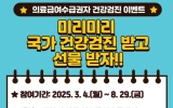 광양 손태성 기자2025. 02.28[나이스데이]광양시는 의료 취약계층인 의료급여수급권자의 건강검진 수검률 향상을 위해 1:1 검진 안내, 의료급여수급권자 건강검진 이벤트 등 적극적인 홍보 활동을 진행하고 있다고 28일 밝혔다. 올해 의료급여수급권자 일반건강검진 대상자는 20 부터 64세(1961~2005년생) 중 홀수년도 출생자로, 일반건강검진기관으로 지정받은 의료기관이라면 전국 어디에서나 검진받을 수 있다. 검진이 가능한 의료기관은 국민건강보험공단 홈페이지에서 확인할 수 있다. 건강검진 항목은 △신체 계측(키·몸무게·허리둘레) △시력·청력 측정 △혈압 측정…