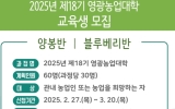 영광 배동영 기자2025. 02.28[나이스데이]영광군은 합리적인 농장경영 및 과학영농 실천능력을 갖춘 전문농업경영인을 양성하기 위하여 '제18기 영광농업대학(양봉반, 블루베리반)' 신입생을 3월 20일까지 모집한다고 밝혔다. 올해 추진하는 영광농업대학은 3월 입학을 시작으로 10월까지 주 1회, 4시간씩 진행하며 총 20회 79시간으로 운영된다. 농번기에는 과정별로 방학을 1회(4~8월) 실시하여 탄력적인 운영으로 수강생에게 편의를 제공한다. 또한 올해는 양봉반, 블루베리반 두 과정으로 운영되며, 계절별 사양관리·블루베리 재배생리·병해충 관리법 등의 이론수업과 …