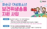 화순 여흥기 기자2025. 02.28[나이스데이]화순군은 28일 여성 청소년의 건강권 보장과 권익 증진 실현을 위한 보건위생용품 지원사업을 추진한다고 밝혔다. 지원 대상은 화순군에 주소를 둔 11세 부터 18세(2007년~2014년 출생) 여성 청소년이다. 신청 대상은 해당 나이에 도달한 신규자 및 그간 미신청자에 한한다. 기존 신청자는 자격요건 해당 시 별도 신청 없이 바우처가 지급되며, 특히 여성가족부로부터 여성 청소년 보건위생용품을 지원받는 청소년은 중복 지원에 해당하는 이유로 사업 대상에서 제외된다. 지원 금액은 1인당 월 1만 2,000원으로 바우…