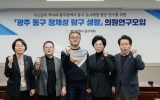구청 나이스데이2025. 02.27[나이스데이]광주 동구의회는 의원 연구모임인 “광주 동구 정체성 탐구생활”이 매주 활발한 연구활동으로 관심을 끌고 있다. 광주 동구의 정체성 확립과 도시재생 방안 연구를 위해 지난 1월 발족된 연구모임은 이지애 의원을 대표의원으로 문선화, 김현숙, 박종균 의원이 참여해 활동 중이다. 연구모임은 도시 및 지역개발학 윤현석 박사를 강사로 초빙해 금요일 아침마다 세미나를 진행하고 있으며 의원뿐 아니라 직원들까지 참여해 활발한 연구를 진행하고 있다. 특히, 동구의 근대화 과정과 광주 도시개발 역사를 세부적으로 연구하고, 이를 바탕으로 …