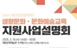 목포 박정래 기자2025. 02.11[나이스데이](재)담양군문화재단은 오는 19일 오후 2시 해동문화예술촌 오색동에서 지역 주민과 문화예술인(단체)을 대상으로 생활문화 및 문화예술교육지원사업 설명회를 개최한다고 밝혔다. 올해 생활문화·문화예술교육지원사업은 군민 문화예술 일상화를 목표로 다양한 연령대와 계층을 위한 맞춤형 프로그램을 제공하여 모든 세대가 참여할 수 있는 폭넓은 문화예술 지원을 강화하고, 문화적 접근성을 높여 읍·면 단위문화 격차 해소에 기여하는 데 중점을 둔다. 추진 사업은 ▲생활문화예술동아리지원 '별스런동아리' ▲찾아가는 문화예술 지원 '담구석문…