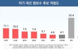 탑뉴스 뉴시스2025. 02.10[나이스데이] 차기 대통령 선거(대선) 후보 적합도 조사에서 범보수 진영 인물 중 김문수 고용노동부 장관이 25.1%를, 범진보 진영 인물 중 이재명 더불어민주당 대표가 40.1%를 기록한 여론조사 결과가 나왔다. 여론조사 전문회사 리얼미터가 에너지경제신문 의뢰로 지난 6~7일(2월 1주차) 이틀간 전국 18세 이상 유권자 1002명을 대상으로 한 차기 대선 후보도 조사에 따르면 범보수에서 김문수 장관이 25.1%로 1위로 나타났다. 이어 유승민 전 국회의원이 11.1%, 오세훈 서울시장 10.3%, 홍준표 대구시장 7.…