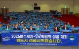 신안 박정래 기자2025. 02.05[나이스데이]2026여수세계섬박람회 범시민준비위원회는 5일 오후 여수문화홀에서 섬박람회 성공 개최 기원 퍼포먼스를 진행했다고 밝혔다. 이날 정기명 여수시장과 백인숙 여수시의회 의장, 범시민준비위 안규철 위원장과 위원 등 370여 명이 참석한 가운데 여수시민의 염원을 담은 퍼포먼스로 섬박람회 성공 개최의 열기를 고조시켰다. 이후 참석자들은 정기총회를 통해 전년도 사업실적을 점검하고, 민간 주도로 진행할 올해 추진계획 등을 심의·의결했다. 안규철 위원장은 “이번 총회를 통해 2026여수세계섬박람회 성공을 위한 시민들의 의지와 다짐…