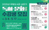 광주 이자형 기자2025. 02.05[나이스데이]광주광역시립도서관(무등‧사직‧산수)은 오는 3월부터 5월까지 시민을 대상으로 20개의 독서문화 강좌를 운영한다. 무등도서관은 성인을 대상으로 ▲고전강독-맹자집주 ▲한자교실 ▲누구나 쉽게 사주명리학 ▲서예교실 ▲민화교실 ▲한국화교실 ▲펜 하나로 시작하는 일상드로잉 ▲팝송으로 입문하는 영어회화 ▲통기타 여행 등 9개 강좌를 운영한다. 사직도서관은 성인을 대상으로 ▲내 삶이 시가 되는 창작교실 ▲스마트 시니어교실 ▲시민한문교실 ▲양림을 그리다 ▲감탄 캘리그라피 5개 강좌를, 어린이를 대상으로 ▲인물로 만나는 우리 역사 등…