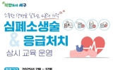 구청 나이스데이2025. 01.30[나이스데이]광주광역시 서구는 2월부터 서구 주민을 대상으로 심정지 등 응급상황 시 신속 대응을 위해 심폐소생술 상설교육 프로그램을 운영한다. 이번 교육은 지역주민의 예상치 못한 응급상황에 대비해 심폐소생술의 중요성을 알리고 참여율을 높이기 위해 마련됐으며 ▲심폐소생술(CPR) ▲자동심장충격기(AED) 사용법 ▲기도 폐쇄에 따른 응급처치 요령 등에 대해 전문 강사의 이론 교육과 실제상황을 대비한 실습 교육을 함께 진행한다. 심폐소생술 상설교육은 회차당 25명으로 구성하여 진행되며 매달 두 번째 화요일, 오후 2시부터 4시까지 …