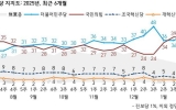 탑뉴스 뉴시스2025. 01.24[나이스데이] 국민의힘 지지율이 38%, 더불어민주당 지지율이 40%로 오차범위 내에서 접점을 벌이고 있는 여론조사 결과가 24일 나왔다. 한국갤럽이 지난 21~23일(1월 넷째 주) 전국 만 18세 이상 유권자 1000명을 대상으로 정당 지지도를 조사한 결과 국민의힘은 38%, 민주당은 40%로 집계됐다. 이어 조국혁신당은 3%, 개혁신당과 진보당, 이외 정당·단체는 각각 1%의 지지율을 기록했다. 지지하는 정당이 없는 무당층은 15%다. 직전 조사(1월 셋째 주)와 비교해 국민의힘 지지율은 1%포인트(p) 하락…