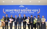 신안 박정래 기자2024. 12.26[나이스데이]2024년 해남군 농업인대상에 황산면 이병연(52세)씨 등 5명이 선정됐다. 이병연씨는 고품질(친환경)쌀 부문에 선정됐으며, 원예특작 부문 문내면 김찬호(67세), 농산물유통·가공 부문 마산면 이웅(64세), 임업 부문 현산면 김건영(59세), 축산 부문 해남읍 윤기현(55세)씨가 수상의 영예를 안았다. 이병연씨는 2006년부터 친환경 농법으로 전환하여 11.5ha의 벼 전체 면적을 유기농으로 재배하고 있으며,‘용의 눈동자’자체 브랜드를 개발하는 등 전문적이고 선도적인 영농 실천으로 고품질 쌀 농업 발전에 노력하고 …