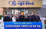 구청 나이스데이2024. 12.20[나이스데이]광주광역시체육회는 20일 광주 남구 소재 아동복지시설인 노틀담 형제의 집을 방문해 따뜻한 나눔을 실천했다. 시 체육회는 올 해 계속된 물가상승, 경기침체로 힘든 시기를 겪고 있는 복지시설에 작은 도움을 주기 위해 방문했다. 겨울 한파로 어려움을 겪는 이웃을 위해 조금이나마 따뜻하게 연말연시를 보내길 바라는 마음으로 손길을 내밀고 10년째 아동복지시설과 나눔을 이어갔다. 전갑수 체육회장을 비롯한 체육회 임직원 10여명은 위문품을 전달하고 시설 관계자 및 이용자들과 소통하는 시간을 가졌다. 전갑수 시 체육회장은 “작은…