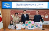 화순 여흥기 기자2024. 12.20[나이스데이]화순군은 지난 19일 화순아이샘터어린이집 교직원과 원아 30명이 군청 소회의실에서 기탁식을 가졌다고 밝혔다. 원내 행사 수익금 전액 85만 원을 기부하기 위해 화순아이샘터어린이집 교직원과 만 3세부터 5세 반 아동 30명이 군청을 방문한 것. 이날 기탁식을 위해 화순군을 방문한 화순아이샘터어린이집 아이들은 행사 수익금 기부와 함께 아동 복지에 힘쓴 화순군에 직접 쓴 감사 편지를 전달했다. 특히 강종철 부군수의 특별 요청으로 원아들이 ‘아기상어’, ‘캐치 티니핑’ 노래를 합창하는 등 흥겨운 분위기…