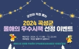 곡성 이경식 기자2024. 12.18[나이스데이]곡성군은 2024년 올 한 해 동안 추진한 다양한 정책 중 군정 발전과 군민 복리 증진에 기여한 올해의 우수시책을 주민들이 직접 선정한다고 전했다. 부서에서 제출한 38건의 후보사업 중 주민 편익 증진도 및 효과성, 창의성 및 전문성, 지속적인 행정 업무 활용 가능성 등 1차 내외부 심사 평가를 거쳐 24개의 사업을 선정했다. 올해의 우수시책 후보사업으로는 ▲ 가루쌀 생산, 가공 지역자립형 단지 육성 ▲ 곡성전통시장 칙칙폭폭야시장 개최 ▲ 취약계층 영양 보충지원 농식품 바우처 ▲ 곡성군 교육발전특구 시범지역 …
