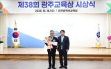 광주 이자형 기자2024. 12.18[나이스데이]광주시교육청은 18일 본청 대회의실에서 ‘제38회 광주교육상 시상식’을 개최했다. ‘광주교육상’은 지난 1987년부터 시작해 올해로 38회째 시행되고 있는 상으로, 매해 광주교육 가족 중 투철한 사명감으로 현장 교육 개선에 헌신·봉사하거나 청렴한 광주교육 발전에 기여한 자를 발굴해 표창하고 있다. 이정선 교육감은 이날 시상식에서 ▲전 광주광역시동부교육지원청 김철호 교육장 ▲전 광주광역시교육청 김종근 교육국장 ▲전 광주학생독립운동기념회관 조미경 관장 등 3명에 대해 상패와 부상을 수여했다. 김철호 전 동부교육지원…