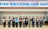 영광 배동영 기자2024. 12.18[나이스데이]영광군은 지난 18일 자원봉사자 100여 명이 참석한 가운데 제18회 영광군 자원봉사대회 시상식을 개최했다. “작은 실천, 큰 나눔! 함께 만드는 따뜻한 영광!” 이라는 주제로 진행된 이번 대회에서는 꾸준하게 자원봉사활동을 실천해 온 20개 단체 548명의 자원봉사자가 참여하여 지역사회와 어려운 이웃 등을 위해 봉사활동을 펼쳤으며 참가단체 중 우수단체 11개와 우수봉사자 1명이 수상의 영예를 안았다. 올해는 작년에 비해 참여자 수가 감소했지만, 관내 취약계층 주거환경개선활동, 사랑의 반찬 나눔 봉사, 이동이불빨래 …