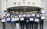 장성 최규동 기자2024. 12.12[나이스데이]광산구의회 의원들이 윤석열 대통령의 탄핵소추안 2차 표결을 앞두고 12일 오후 광산구의회 앞에서 윤 대통령의 탄핵을 촉구하는 집회를 열었다. 집회에는 더불어민주당·진보당·정의당 소속 광산구의원 18명 전원이 참여해 목소리를 모았다. 의원들은 ‘윤석열 탄핵’, ‘국민의힘 해체’ 문구가 적힌 피켓을 들고, △내란 주범 윤석열을 탄핵하라! 내란 주범 윤석열을 즉각 체포하라! △국민의 명령이다. 광주의 명령이다! 내란수괴 윤석열을 탄핵하라! △국민배신! 국민의힘 국회의원들은 민의를 수용하고, 탄핵안 가결에 동참하라! 등의 …
