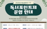 순천 나이스데이2024. 12.12[나이스데이]화순군은 화순 열린도서관에서 12월 17일부터 “2025년 화순열린도서관 독서점수제(독서포인트제)” 참가자를 모집한다고 밝혔다. 화순 열린도서관은 지역 주민들에게 독서에 대한 동기를 부여하고 독서문화를 확산하기 위해 “독서점수제(포인트제)”를 추진한다. 독서점수제는 매월 독서 목표를 달성하면 5,000점을 적립하여 지역 상품권으로 지급하는 사업으로, 지난해 시범운영을 거쳐 올해는 총 200명을 모집해 운영되고 있다. 2025년에는 초등학생들의 독서목표가 다소 부담된다는 의견을 수렴해 기존 5권에서 4권으로 변경되…