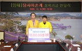 장흥 김창민 기자2024. 12.05[나이스데이]장흥군 장흥읍 평화리 김기정씨가 4일 장흥읍행정복지센터를 방문해 희망 2025 나눔 캠페인 성금 100만원을 기탁했다. 김기정씨는 “동절기 취약계층이 따뜻한 겨울나기를 바라는 마음에 기부하게 됐다”라고 말했다. 문병욱 장흥읍장은 “경제도 어려운 시기에 도움의 손길이 필요한 이웃을 위해 나눔을 실천해주셔서 감사드린다”며 “성금은 전남사회복지공동모금회를 통해 어려운 이웃에게 전달하겠다”고 말했다.