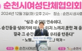 곡성 이경식 기자2024. 12.04[나이스데이]순천시는 지난 3일 상사종합체육관에서 순천시여성단체협의회(회장 김윤아) 회원 300여 명이 참석한 가운데 제29회 순천시여성단체협의회 한마당 행사를 개최했다고 밝혔다. 행사는 식전공연인 ‘순천이 깨끗해지는 중 바른자세 패션쇼’와 장구 난타를 시작으로, 1부 기념식에서는 여성단체 활동 보고, 여성발전 유공과 여성친화도시 조성에 기여한 유공자 13명에 대한 표창이 진행됐다. 이어 2부 화합의 자리에서 다양한 장기자랑과 대동놀이가 펼쳐지며 회원들 간의 친목을 다지는 시간을 가졌다. 행사에 참석한 노관규 순천시장은 축사를 …