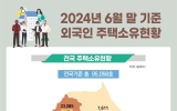 무안 이영욱 기자2024. 11.29[나이스데이] 올해 상반기 기준 외국인이 소유한 주택이 10만가구에 육박하는 것으로 나타났다. 외국인 소유 주택의 절반 이상은 중국 국적자가 소유한 것으로 조사됐다. 29일 국토교통부가 발표한 '외국인 토지·주택 보유통계'에 따르면, 2024년 6월말 기준 외국인이 소유한 주택은 9만5058가구, 주택 소유 외국인은 9만3414명으로 집계됐다. 이는 전체 주택(1955만가구, 2023년 주택총조사 기준)의 0.49% 수준으로, 가구 수는 지난해 하반기(9만1453가구) 대비 3.8% 증가했고, 소유자 수 역시 같은 기간…