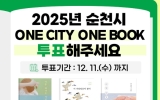 순천 나이스데이2024. 11.26[나이스데이]순천시가 오는 12월 11일까지 2025년 한 해 동안 순천시민이 함께 읽을 ‘2025년 순천시 One City One Book’ 선정을 위한 시민 투표를 진행한다고 밝혔다. One City One Book 시민 투표는 온라인과 오프라인으로 진행된다. 온라인은 네이버폼에서 진행하며, 온라인 투표 후 인스타그램 이벤트에 참여하면 추첨을 통해 100명에게 커피 기프티콘을 증정하는 이벤트도 운영한다. 오프라인은 순천시립도서관(삼산, 그림책, 연향, 기적, 조례호수, 신대, 어울림) 자료실에 비치된 투표용지를 통해 …