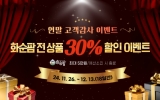 화순 여흥기 기자2024. 11.21[나이스데이]화순군은 11월 26일부터 12월 13일까지 화순팜에서 연말 고객 감사 이벤트를 실시한다고 밝혔다. 이번 고객 감사 이벤트는 ▲할인쿠폰(전 상품 30%, 신규회원 2,000원) ▲댓글 이벤트 ▲구매후기 이벤트로 구성한다. 할인쿠폰은 화순팜 회원들에게 전 상품에 적용할 수 있는 30% 할인쿠폰을 지급하고, 신규회원 1,000명에 한하여 추가로 2,000원 할인쿠폰을 지급한다. 댓글 이벤트는 올해 가장 고마웠던 사람에게 감사 인사를 댓글로 남기거나, 상품 구매 후 후기를 남긴 회원 중 추첨을 통해 10명을 선정, 화순…