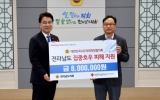전남 주용규 기자2024. 11.20[나이스데이]전라남도의회는 지난 9월 집중호우가 발생한 장흥, 강진, 해남, 영암 등의 호우피해민들을 지원하기 위해 재난구호금 800만 원을 대한적십자사 광주전남지사에 기탁했다. 이날 기탁식에는 전라남도의회 김태균 의장을 비롯한 이광일·이철 양 부의장과 대한적십자사 광주전남지사 원왕희 사무처장, 이준형 나눔기획팀장이 참석했다. 전라남도의회의 기탁금은 적십자 광주전남지사에서 호우피해지역의 생활안정을 위한 물품 지원에 사용될 예정이다. 전라남도의회 김태균 의장은 “기탁금이 호우피해로 인한 도민들에게 따뜻한 위로와 희망이 되길 바…