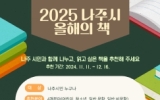 화순 여흥기 기자2024. 11.19[나이스데이]전라남도 나주시는 전라남도교육청, 동신대학교와 함께 2025년 나주시민과 함께 읽을 ‘2025년 올해의 책’ 후보 도서를 12월 16일까지 추천받는다. ‘올해의 책’ 사업은 시민들이 함께 도서를 선정하여 다양한 연계 프로그램 등을 통해 함께 읽고 소통하는 ‘책 읽는 나주’의 독서문화 정착을 위한 독서 운동이다. 선정 부문은 어린이도서, 청소년도서, 일반 문학도서, 일반 비문학도서 4개 부문으로 시민 추천 도서를 대상으로 각 부문별 도서 선정 심의위원 회의를 거친 후 시민 선호도 조사를 통해 최종 선정한다. 나주시민…