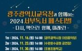 구청 나이스데이2024. 11.15[나이스데이]광주학생들이 미국에서 한국문화를 알린다. 광주시교육청은 15일부터 23일까지 7박9일 일정으로 미국 보스턴과 뉴욕에서 ‘光탈페 탐방 프로그램’을 운영한다. 이번 프로그램은 ‘학생 글로벌 리더 세계 한 바퀴 프로그램’의 하나로, 학생들의 글로벌 예술 역량을 키우고 진로 탐색을 도움을 주기 위해 마련됐다. 프로그램에는 지난 10월 12일 개최된 2024 ‘光탈페(광주학생탈렌트페스티벌)’ 경연과 별도 심사를 통해 선발된 학생 16명이 참여한다. 또 이정선 교육감이 학생들을 직접 인솔해 미국 내 주요 대학 및 예술 …