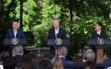 탑뉴스 뉴시스2024. 11.15[나이스데이] 윤석열 대통령의 남미 순방 최대 관심사였던 트럼프 미국 대통령 당선인과의 깜짝 회동은 사실상 어려울 것으로 전해졌다. 시진핑 중국 국가주석과의 한중 정상회담과 이시바 시게루 일본 총리와의 한일 정상회담, 한미일 정상회의는 확정됐다. 모두 페루 리마 APEC(아시아태평양경제협력체) 정상회의 계기에 이뤄진다. 조 바이든 미국 대통령과의 한미 정상회담도 별도로 추진 중이다. 대통령실 고위 관계자는 14일(현지시간) 페루 리마에 마련된 프레스센터에서 취재진과 만나 "(트럼프 당선인 측이) 현재로서는 내…