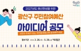 탑뉴스 뉴시스2026. 03.31[나이스데이]광주 광산구가 지역 문제를 해결할 시민의 아이디어를 담은 주민참여예산 사업 제안을 공개 모집한다. 공모는 내년도 주민참여예산 중 3억 5,000만 원 규모의 주민참여형 사업을 대상으로 한다. 생활 불편 해소, 안전사고 예방, 시민 복리 증진 및 삶의 질 향상, 마을 현안 해결, 지역발전 등 광산구 지역 전체를 대상으로 하는 제안을 받는다. 단, 광산구 지역에 속하지 않은 사안, 중장기적‧대규모 예산 투자가 필요한 사업, 특정인 또는 단체의 이익을 위하거나, 갈등 소지가 있는 사업 등은 제외된다. 광산구 주민, 광산구에…