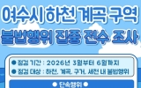 여수 손태성 기자2026. 03.16[나이스데이]여수시는 지난해에 이어 올해도 관내 하천·계곡 내 무단 점용과 불법 상행위 등 위법행위에 대한 집중단속을 통해 공공 이용 질서 확립을 추진한다고 16일 밝혔다. 올해는 지난해보다 단속 범위를 확대해 하천, 계곡, 구거(도랑), 세천 등에서 평상, 그늘막, 방갈로, 가설건축물, 데크 설치와 불법 경작, 형질변경 등 허가받지 않은 모든 행위를 단속한다. 시는 부시장을 단장으로 11개 팀으로 구성된 전담 TF팀을 구성해 3월부터 6월까지 불법행위를 집중 단속할 계획이다. 또한 재발 가능성이 높은 지역은 중점관리 대상지역…