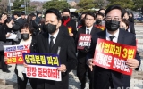 탑뉴스 뉴시스2026. 03.06[나이스데이] 국민의힘 장동혁 지도부가 '사법파괴 3법' 국무회의 의결을 고리로 대여 투쟁에 화력을 집중시키는 모습이다. 당내 '절윤' 요구에는 답하지 않으면서 갈등 불씨는 계속되고 있다. 국민의힘 지도부는 6일 법왜곡죄·재판소원·대법관 증원 등 이른바 사법파괴 3대 악법 철폐 투쟁을 지속적으로 전개하겠다는 방침이다. 국민의힘은 이달 초부터 더불어민주당의 사법파괴 3법 국회 강행 처리에 따른 장외투쟁을 전개하고 있다. 지난 3일 서울 여의도 국회에서 청와대까지 도보투쟁을 하고, 5일에는 청와대 앞에서 상복 차림으로 현…