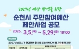 순천 손태성 기자2026. 03.05[나이스데이]순천시는 2027년도 예산편성 과정에 시민의 다양한 의견과 아이디어를 반영하기 위해 3월부터 5월까지 주민참여예산 제안사업을 접수한다고 밝혔다. 주민참여예산제는 시민이 직접 지역에 필요한 사업을 제안하고, 이를 예산에 반영함으로써 재정 운영의 투명성과 민주성을 높이는 제도이다. 시민의 시각에서 생활 속 불편사항을 발굴하고, 지역 현안 해결을 위한 정책을 제안할 수 있다는 점에서 실질적인 참여 행정의 대표제도로 자리매김하고 있다. 순천시는 2021년부터 24개 읍면동 주민자치회를 전면 시행해 왔으며, 주민참여예산제…
