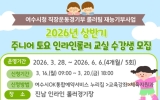여수 손태성 기자2026. 03.12[나이스데이]여수시가 지역 유소년을 대상으로 ‘2026년 상반기 주니어 토요 인라인롤러 교실’을 운영하고 오는 3월 16일부터 20일까지 수강생을 선착순 모집한다. 이번 프로그램은 관내 유치원생과 초등학생 50명을 대상으로 진행되며 여수시청 직장운동경기부 롤러팀 선수들이 재능기부 형식으로 직접 지도에 나선다. 참가자들은 기본적인 롤러교육과 기초기술을 배우고 인라인롤러 주행 능력을 향상할 수 있는 다양한 기술을 익히게 된다. 신청은 수강을 희망하는 유치원·초등학생 보호자가 여수시OK통합예약시스템을 통해 신청할 수 있다. 재…