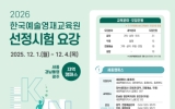 [나이스데이]광주광역시는 한국예술종합학교 부설기관인 한국예술영재교육원 광주캠퍼스의 2026년도 교육생을 오는 12월 1일부터 4일까지 모집한다고 13일 밝혔다. 한국예술영재교육원 광주캠퍼스는 수도권에 집중돼 있는 예술영재교육을 지역에서도 받을 수 있도록 지난 2021년 광주시와 한국예술종합학교, 국립아시아문화전당이 협약해 2023년 정식 개원한 호남권 예술영재 교육기관이다. 이번 모집에는 일반전형으로 ▲음악(기악·성악·작곡) 31명 ▲무용(발레) 15명 ▲전통예술(기악·성악·무용·연희) 19명 ▲융합(영상·멀티미디어) 10명 등…
