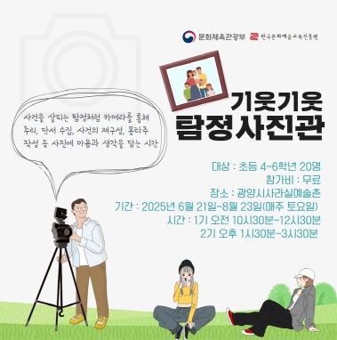 한편, 이번 사업은 11월까지 계속되며, '기웃기웃 탐정 사진관' 참여자 모집은 5월 30일부터 6월 18일까지 사라실 예술촌 홈페이지 및 SNS를 통해 진행 중이다. '떠들썩한 예술가 도서관'과 '뚝딱뚝딱 탐험가 학교'의 모집 일정은 추후 공개될 예정이다.