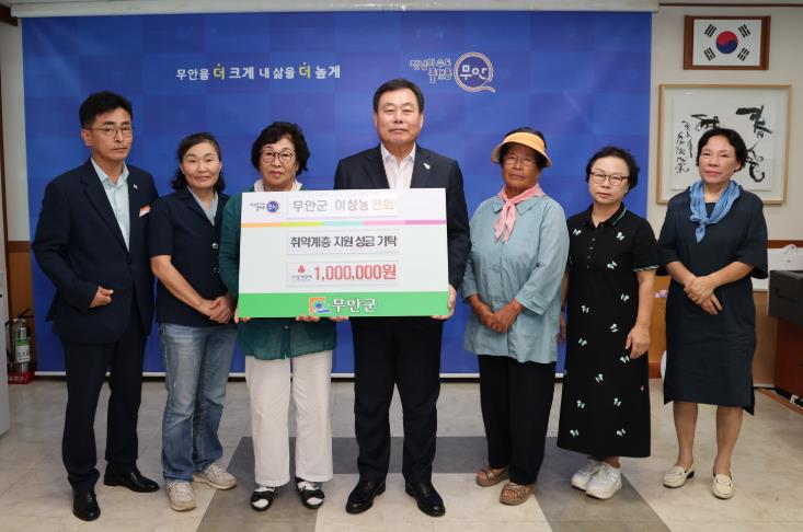 한편, 무안군은 이번에 기탁된 성금을 전남사회복지공동모금회를 통해 관내 취약계층 지원에 활용할 예정이다.